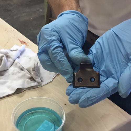 Make sure your hardware is clean of any sealer or lacquer. A lot of new bronze hardware is sealed with lacquer to keep it from aging, which will also keep The Patinator from doing its job. You can use lacquer thinner and steel wool if it does have this protective layer on it. How do you know if your hardware has been lacquered? Dip it into Patinator and if after 10-20 seconds you don’t notice any color change, then it likely has been sealed. If you are aging older hardware, then make sure there is no paint or other gunk built up on the surface.